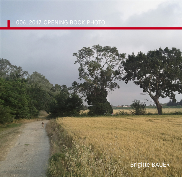 Douze planches composées spécialement pour Opening book à partir de photographies issues de la série Dogwalk. « Brigitte Bauer promène son chien tous les jours le long du Rhône, dans les environs d’Arles. Elle emporte toujours avec elle son téléphone portable pour photographier son chien quand il explore le territoire. Les chiens suggèrent qu’il existe une autre manière de naviguer dans le monde, une autre manière de voir, et ramènent les humains à un temps plus ancien, un temps d’avant les nations et les frontières formelles, à une vie utopique imaginaire dont la peur serait absente. C’est peut-être d’ailleurs pour cette raison que nous avons des chiens : ils nous rappellent qu’il est possible de s’affranchir des contraintes des frontières, et de considérer le monde comme un ensemble de territoires liquides.” (Paul Wombell)